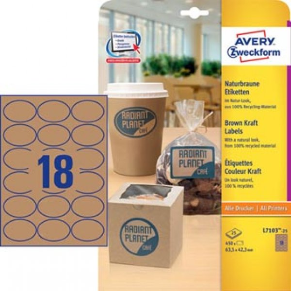 Avery Zweckform etikety 63.5mm x 42.3mm, A4, přírodně hnědé, 18 etiket, baleno po 25 ks, L7103-25, pro laserové a inkoustové tiská