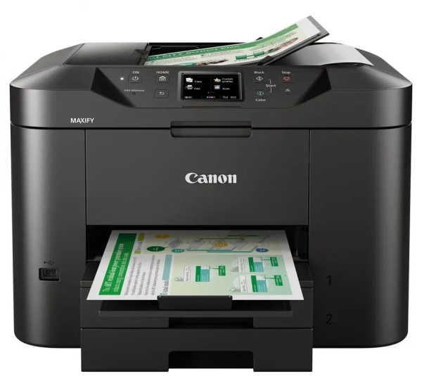 Plně vybavená tiskárna, skener, kopírka a fax navržená do domácí kanceláře. Zařízení Canon řady MAXIFY MB2750 má velký zásobník papíru na 500 listů a automatický podavač dokumentů na 50 listů. Toto zařízení využívá inkousty DRHD odolné vůči zvýrazňovačům a oděru a tiskne syté odstíny černé, živé barvy i ostrý text ve špičkové kvalitě. Vysoká kvalita však není na úkor rychlosti: zařízení tiskne formát A4 vysokou rychlostí 24 obr./min černobíle a 15,5 obr./min barevně, přičemž první strana je hotová už za 6 sekund.Podporuje mobilní zařízení, cloud a produktivitu