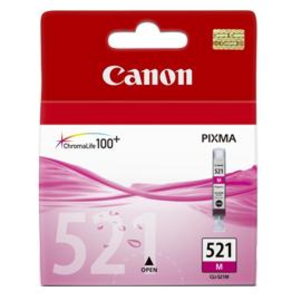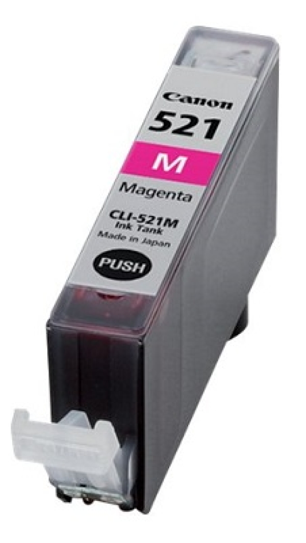 Náplň Náplň Canon CLI-521M purpurová (9 ml), která byla vyrobena pod značkou Canon.