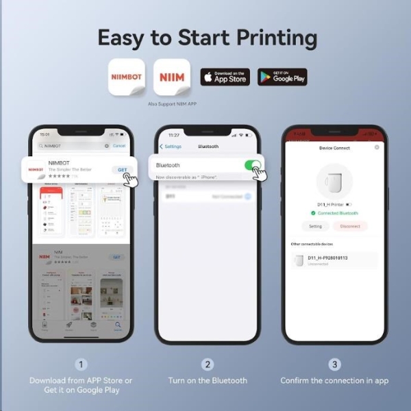 Zapomeňte na zdlouhavé a komplikované procesy tisku etiket. S novinkou NIIMBOT D11-H je tisk etiket hračkou. Díky Bluetooth připojení a lithiovému akumulátoru můžete polepovat bez omezení až 5 hodin. S NIIMBOT D11-H můžete jednoduše označovat věci v kanceláři, škole, obchodě a na mnoho dalších místech. Její kompatibilita se systémy Android a iOS znamená, že můžete tisknout přímo ze svého smartphonu nebo tabletu, což zajišťuje maximální pohodlí a efektivitu.